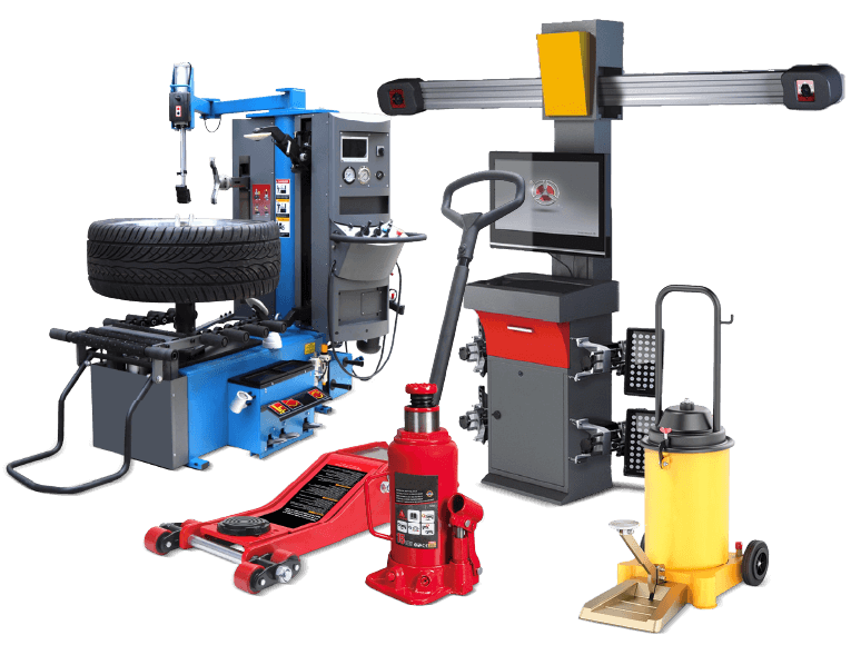 Professional equipment for tire changing, wheel balancing, and complete wheel service operations.
